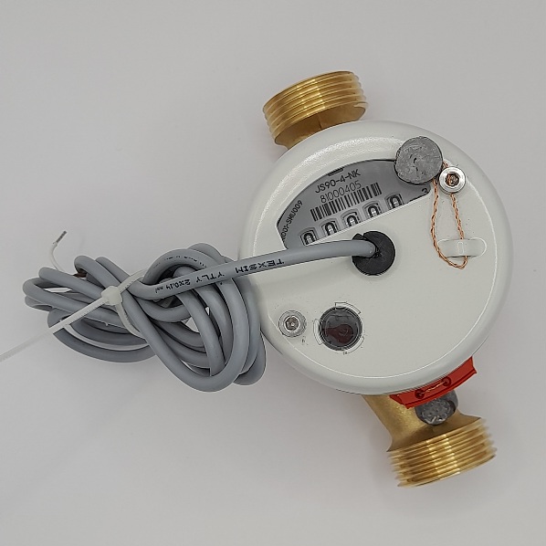 Polski wodomierz JS-NK (DN20) APATOR POWOGAZ do ciepłej wody, wyposażony w nadajnik impulsowy z liczydłem pięciobębenkowym – (IP65)